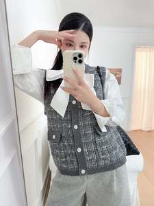 小禾25秋季新款小香风马甲羊毛混纺纱针织开衫背心女1252C2066401
