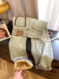 加绒加厚直筒牛仔裤女2025年冬季新款胖mm宽松显瘦百搭保暖阔腿裤