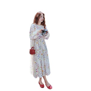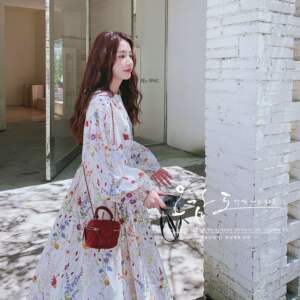 优雅碎花荷叶边甜美连衣裙女长款2025年秋季新款法式早秋显瘦减龄