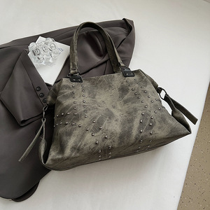 2025秋季新款时尚铆钉单肩包大容量托特包女高颜值休闲通勤腋下包