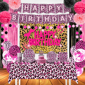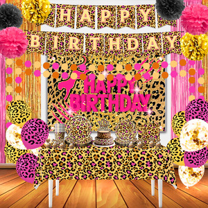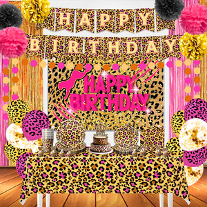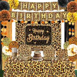 跨境豹纹Cheetah生日主题派对装饰布置横幅拉旗蛋糕插旗气球套装