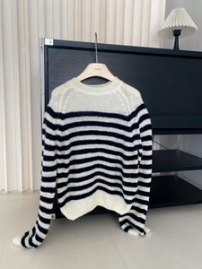 GAGD 马海毛套头条纹毛衣女 韩系chic复古插肩袖百搭软糯短款毛衣