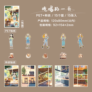 美好的一天人物造景PET贴纸 金小啾的一天系列 4款15张模切贴纸