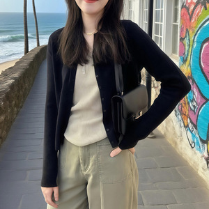 黑色小香风防晒针织开衫女夏季薄款配吊带外搭空调小罩衫上衣