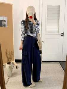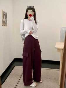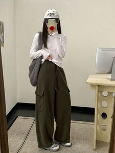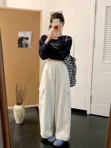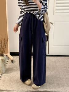 美式阔腿工装裤女春秋款宽松直筒抽绳束脚两穿多口袋休闲长裤批发