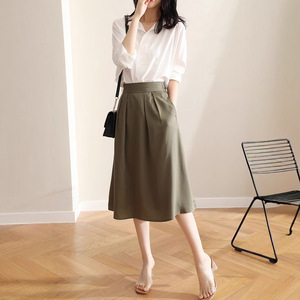 天丝半身裙女2025夏季时尚气质女人味高品质松紧腰显瘦纯色A字裙