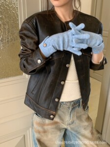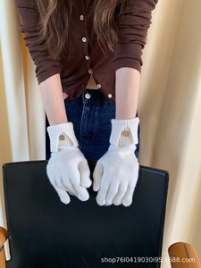 25新款含羊毛针织手套韩系高级感开叉贝壳扣冬季保暖分指触屏手套