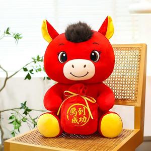 批发马年吉祥物毛绒玩具生肖马公仔马上有钱玩偶抱枕年会公司礼品