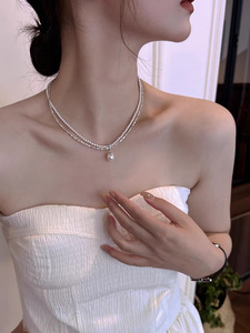 碎银子双层缠绕叠戴珍珠项链小众高级感轻奢锁骨链2025新款毛衣链