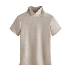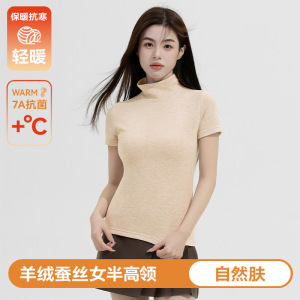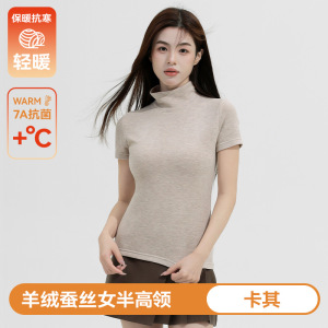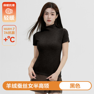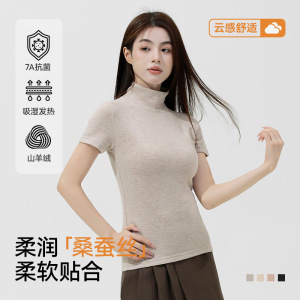德绒短袖半高领女2025新款正肩修身秋羊绒蚕丝可外穿内搭保暖上衣