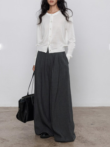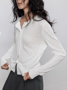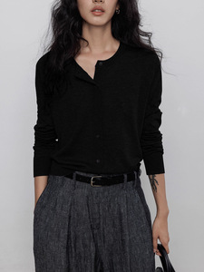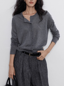 秋季圆领长袖针织开衫女薄款外穿宽松慵懒老钱风上衣