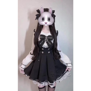 少女感减龄学院风拼接长袖连衣裙重工木耳边短裙秋季显瘦两件套装