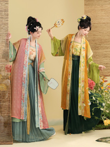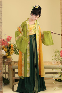 黄柚来 黄色背心+黄绿褙子+黄色吊带+深绿下裙 四件套