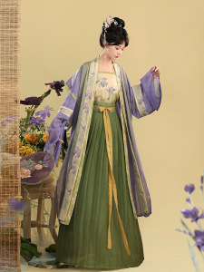 紫鸢槿 紫色背心+紫色褙子+紫色吊带+绿色下裙 四件套