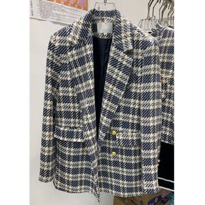小香风粗花呢西装外套2023秋冬加棉加厚女韩版长袖单排扣气质上衣