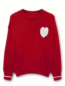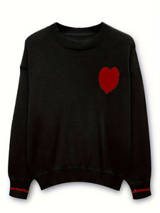 2025年秋冬大码新款跨境欧美女士爱心圆领针织衫毛衣