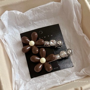 韩系巧克力棕色小花花发夹太阳花朵闪钻发卡秋冬刘海碎发侧边夹女