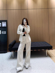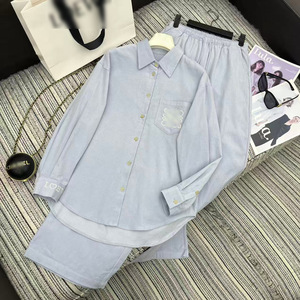 2025年秋冬Loe*新款刺绣logo口袋翻领长袖衬衫搭松紧腰阔腿裤套装