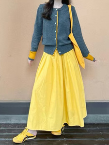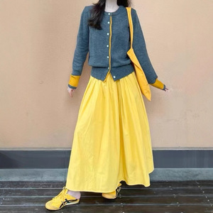 套装女2025秋季韩系温柔风拼接假两件开衫毛衣高腰半身裙两件套潮