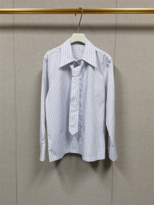 法式小众2025早秋新款女装可拆卸领带条纹长袖衬衫