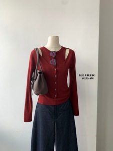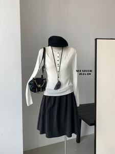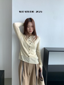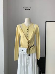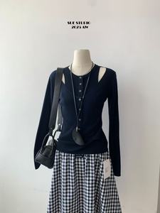 SUE十三行叠穿气质假两件针织衫女秋季新款韩系修身显瘦上衣37120