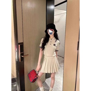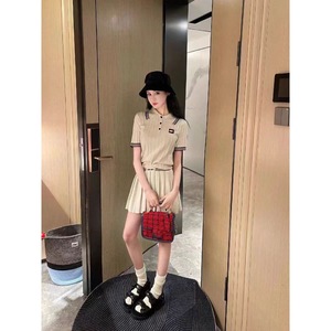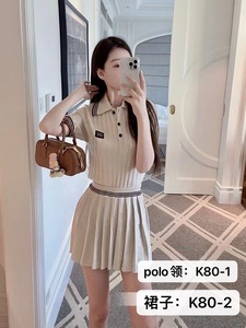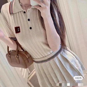 贵气早春新款学院风撞色条纹短款POLO领针织衫上衣+百褶裙两件套