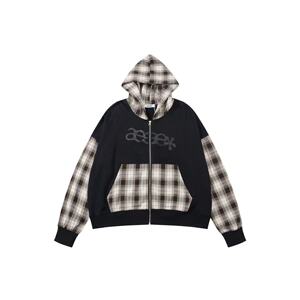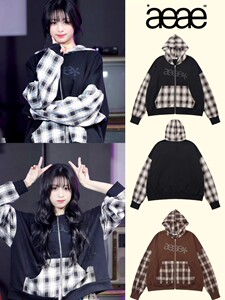 【官网正品】aeae拼接格子外套女ahyeon同款宽松连帽卫衣秋冬款