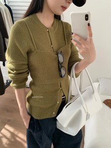 MZI STUDIO秋冬新款排扣针织开衫+简约短款叠穿背心两件套装25680