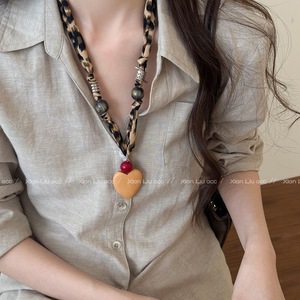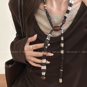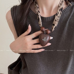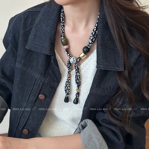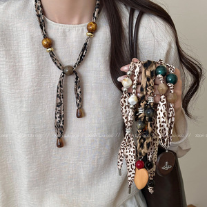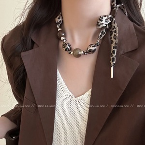 美拉德豹纹印花丝巾项链女2025新款个性毛衣链小众设计感配饰
