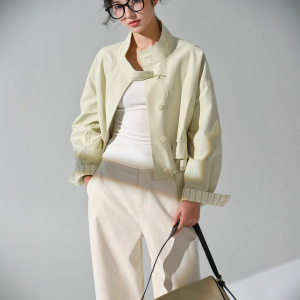 9.8上新 工装风立领休闲夹克外套女秋通勤宽松遮肉高级感抽绳上衣