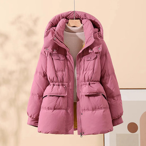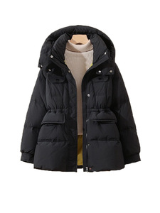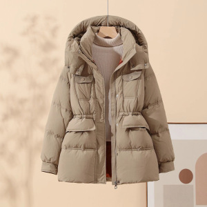 连帽小个子白鸭绒羽绒服女2025冬季新款时尚束腰白鸭绒多口袋外套
