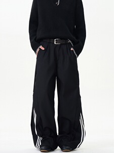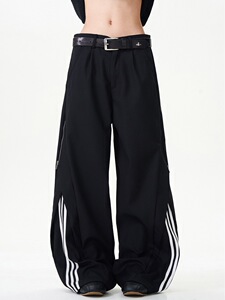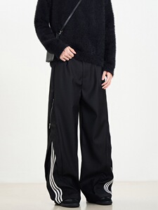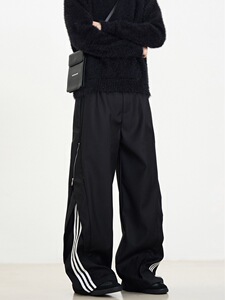 美式高级侧边拉链条纹垂感西裤男女秋季复古宽松直筒休闲长裤ins