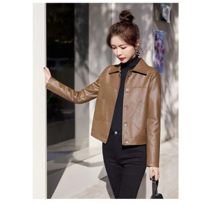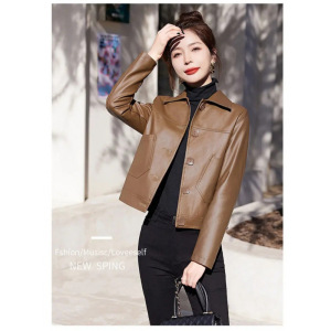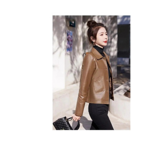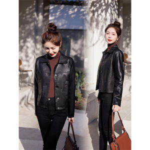 海宁皮衣女春秋短款高档潮流气质显瘦百搭皮夹克女小个子修身外套