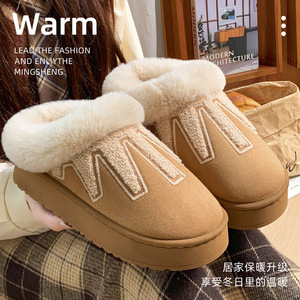 跨境新款舒适居家保暖冬季刺绣保暖棉拖鞋男女情侣款室内棉拖批发