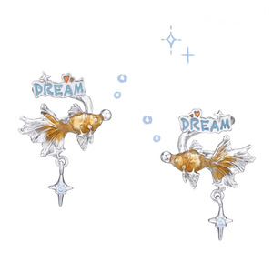 新款梦核金鱼无耳洞鱼尾耳夹高级感耳骨夹甜酷耳挂耳饰小众设计感