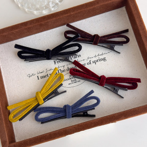 2025年秋冬新款韩版时尚甜美彩色丝绒立体蝴蝶结发夹一字夹鸭嘴夹