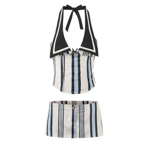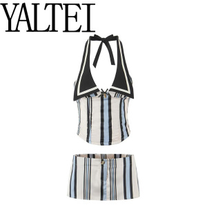 YALTEI跨境速卖通ins欧美外贸 女装 欧美风法式条纹挂脖吊带半裙