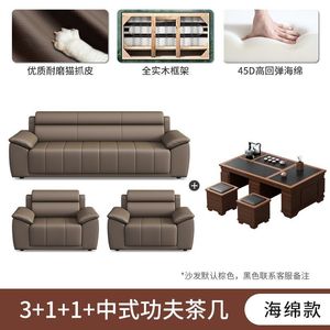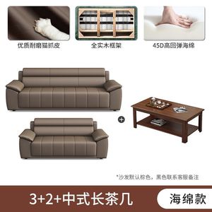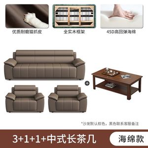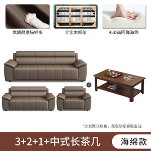 猫抓皮办公室皮沙发家用轻奢现代简约沙发意式钢琴键免洗真皮沙发
