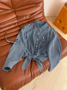 高品质RL拉夫刺绣经典战马标翻领长袖系带牛仔衬衫休闲宽松长袖女