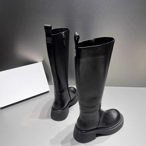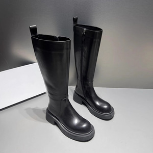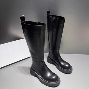 欧洲站长靴女2025秋冬新款厚底粗跟高筒靴胎牛皮侧拉链圆头骑士靴