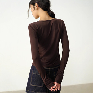 9.8上新 兰精天丝莫代尔V领T恤女秋季内搭修身显瘦打底衫弹力长袖