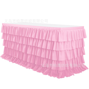 爆款新品纯色五层蛋糕桌裙生日聚会派对桌裙婚礼装饰台裙桌裙装饰