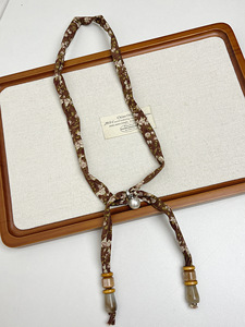 美拉德色系豹纹珍珠串珠项链文艺复古时尚锁骨链个性气质丝巾颈链