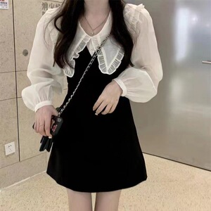 娃娃领长袖连衣裙女早秋新款法式高级感气质收腰显瘦温柔风裙子