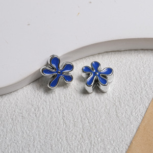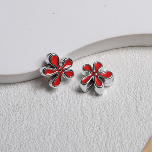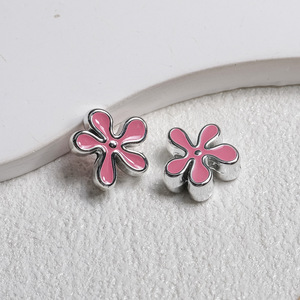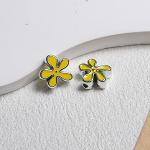 不规则亮银点油海绵花朵穿孔珠亚克力diy饰品包挂手机链条配件