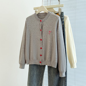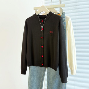 实拍秋冬新款包芯纱针织毛衣开衫2025内搭外穿刺绣爱心扣打底衫女