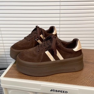 厚底磨砂皮板鞋女鞋2025年新款秋冬运动休闲鞋松糕底复古德训鞋女