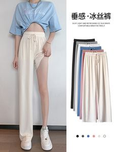 阔腿裤子女装休闲裤大码夏季薄款高腰垂感胖mm显瘦直筒拖地九分裤