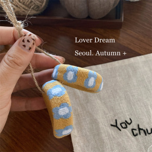 蓝色花朵 黄色毛巾圈发圈