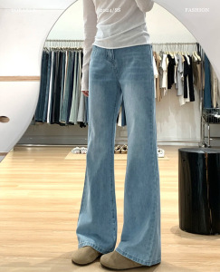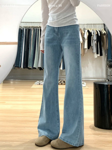 浅色弹力微喇牛仔裤女秋季新款大码胖mm高腰显瘦梨形身材喇叭裤子